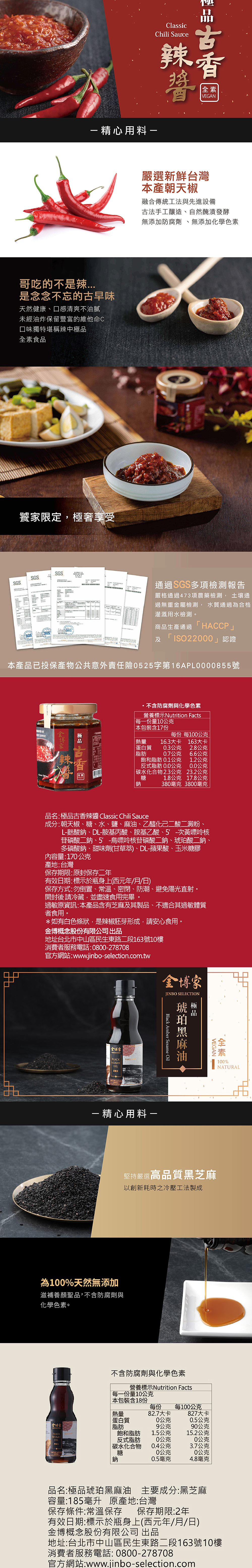 🎁 內容物:極品琥珀黑麻油2瓶、極品古香辣醬